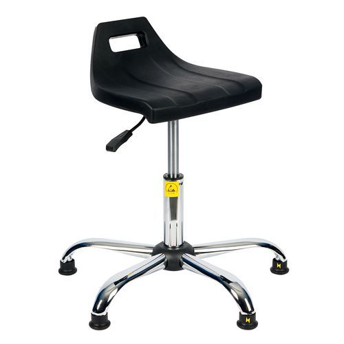 Sedák z polyuretanu a podstavec z chromované oceli.