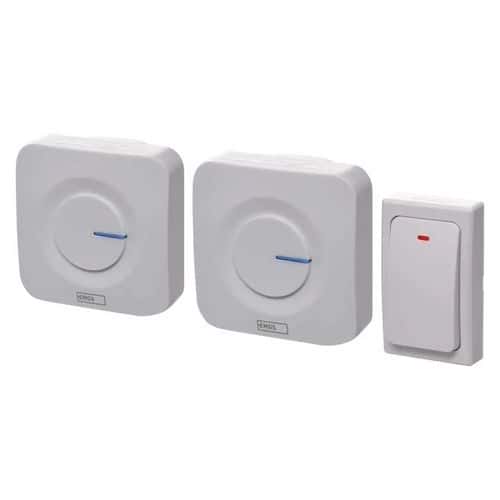 Zvonek s bezbateriovým tlačítkem a dvěma přijímači vhodný do kanceláře, bytu nebo domu.