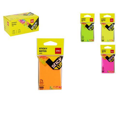 Bloček samolepící DELI STICK UP 76 x 51mm 100l NEON, mix, 12ks