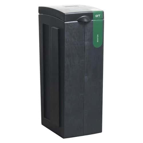 Třídicí stanice pro 3 proudy odpadu: papír, plast a ostatní odpad (ve 4 jazycích).