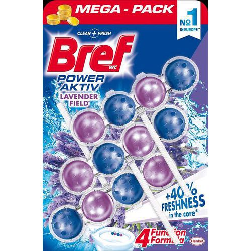 WC blok Bref Power Aktiv Lavender představuje inovativní způsob údržby vaší toalety. Jádro kuličky obsahuje o 40 % více parfému, což zaručuje vůni od prvního do posledního spláchnutí. Vůně je intenzivnější a díky novému složení vydrží nyní ještě déle - až 200 spláchnutí. Čtyři kuličky - čtyři funkce. Jednoduše umístěte blok pod kraj WC mísy a nasměřujte jej na proud vody. Při každém spláchnutím si následně vychutnejte čistotu a svěžest květin. Hygienická čistota. Bohatá čistící pěna. Ochrana před vodním kamenem. Dlouhotrvající svěžest s vůní citronu.