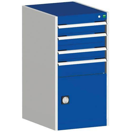 Kovové dílenské skříně Bott Verso se zásuvkami pro efektivní využití v provozech a dílnách.