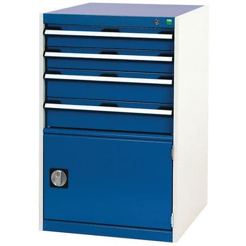 Zásuvkové skříně Bott Cubio se zásuvkami s nosností 200 kg a 100% výsuvy na válečkových ložiskách.