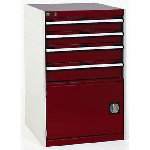 Dílenská zásuvková skříň Bott Cubio 200, 90 x 80 x 65 cm, 3 zásuvky, 1 skříňka, šedá-šedá