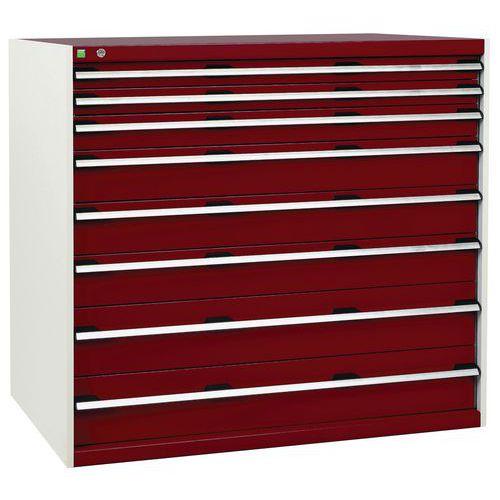 Zásuvková skříň je opatřená mechanismem centrálního zamykání a blokace zásuvek. Zásuvky jsou základním skladovacím prvkem, a proto splňují vysoké požadavky na pevnost a stabilitu.