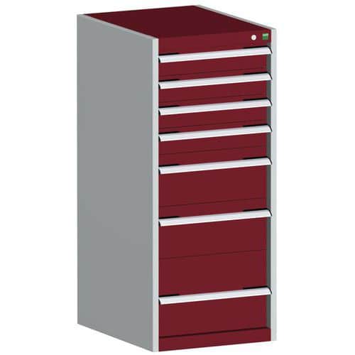 Zásuvkové skříně Bott Cubio se zásuvkami s nosností 75 kg a 100% výsuvy na válečkových ložiskách.