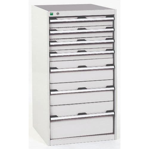 Zásuvkové skříně Bott Cubio se zásuvkami s nosností 75 kg a 100% výsuvy na válečkových ložiskách.