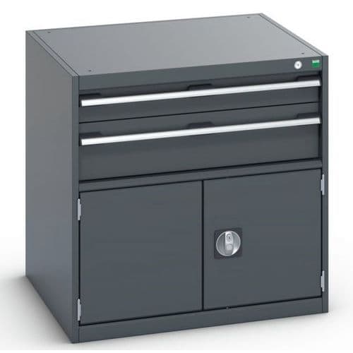 Zásuvkové skříně Bott Cubio se zásuvkami s nosností 75 kg a 100% výsuvy na válečkových ložiskách.
