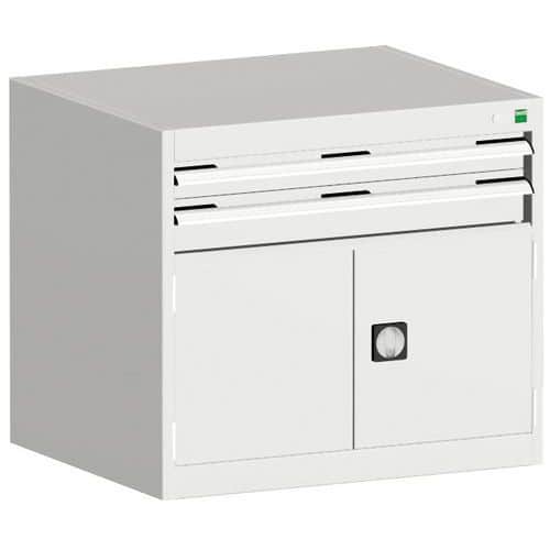 Zásuvkové skříně Bott Cubio se zásuvkami s nosností 75 kg a 100% výsuvy na válečkových ložiskách.