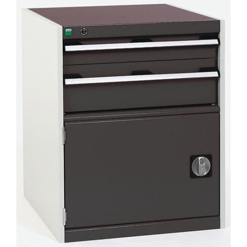 Dílenská zásuvková skříň Bott Cubio, 90 x 65 x 52,5 cm, 3 zásuvky, 1 skříňka, šedá-šedá