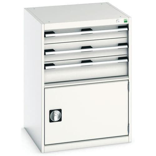 Dílenské skříně se dvěma zásuvkami a dvěma policemi jsou vyrobeny z ocelového plechu, tl.1 mm.