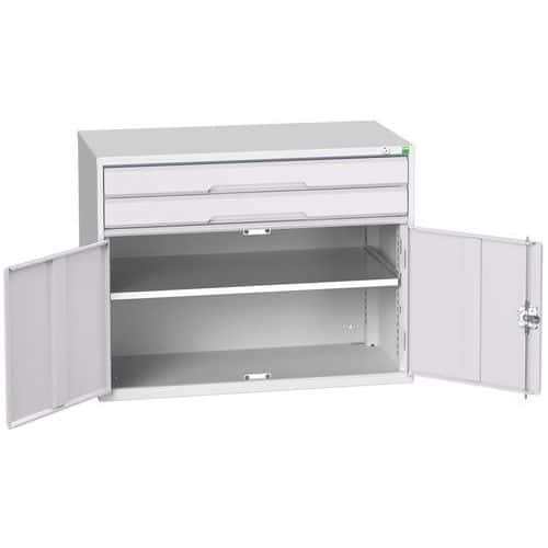 Kovové dílenské skříně Bott Verso se zásuvkami pro efektivní využití v provozech a dílnách.