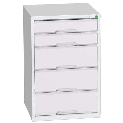 Kovová skříň s jednou policí a s deseti zásuvkami. Dveře jsou pro větší bezpečnost vyztuženy profilovanými výztuhami. Je uzamykatelná tříbodovým rozvorovým mechanismem. Dodáváno v demontovaném stavu se spojovacím materiálem.