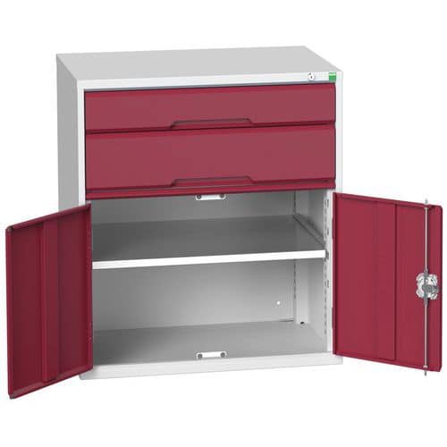 Zásuvkové skříně Bott Cubio se zásuvkami s nosností 75 kg a 100% výsuvy na válečkových ložiskách.