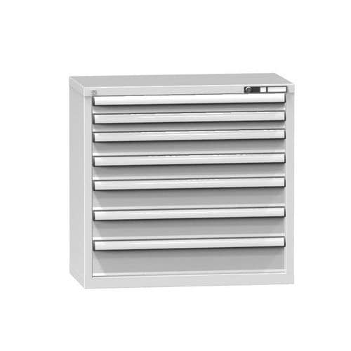 Zásuvková skříň je opatřená mechanismem centrálního zamykání a blokace zásuvek. Zásuvky jsou základním skladovacím prvkem, a proto splňují vysoké požadavky na pevnost a stabilitu.