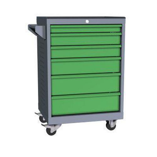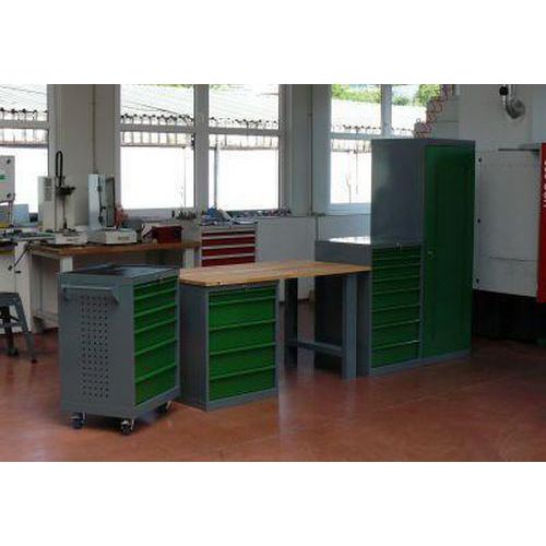 Mobilní kufr z umělé hmoty k uskladnění nářadí a dalších dílenských potřeb.