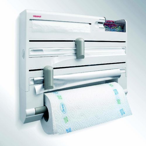 zasobniky na papirove rucniky v rolich ve dvou barevnych variantach. opatreny rezacim mechanismem a panelem push pro podani papiru pro pripad, ze nejde videt. na panelu jsou uvedeny instrukce v braillove pismu. zbytek role priblizne o prumeru 7,5 cm automaticky pada do polohy pouzite role a je mozne vlozit novou, ktera se automaticky aktivuje po vypotrebovani puvodni role.