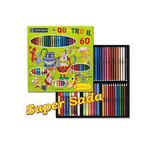 Šedesátikusová souprava pro malé výtvarníky. Obsahuje 30ks vypratelných fixů, 7ks přebarvitelných značkovačů a 1 zmizík. Kromě toho ještě 6ks značkovačů s reflexním inkoustem, 12ks pastelek a čtvery omalovánky.