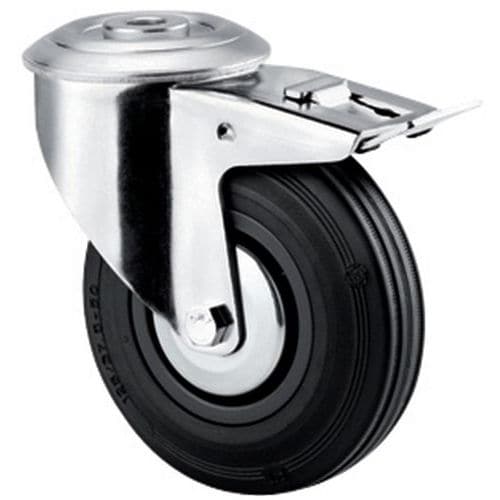 Gumové otočné kolo se středovým otvorem a brzdou, průměr 100 mm
