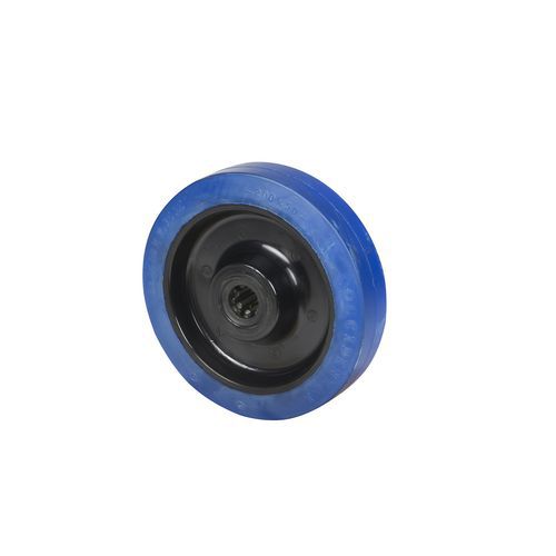 Samostatná kola s modrou pryžovou obručí na polypropylenovém disku. Jehlová ložiska, snížený valivý odpor.