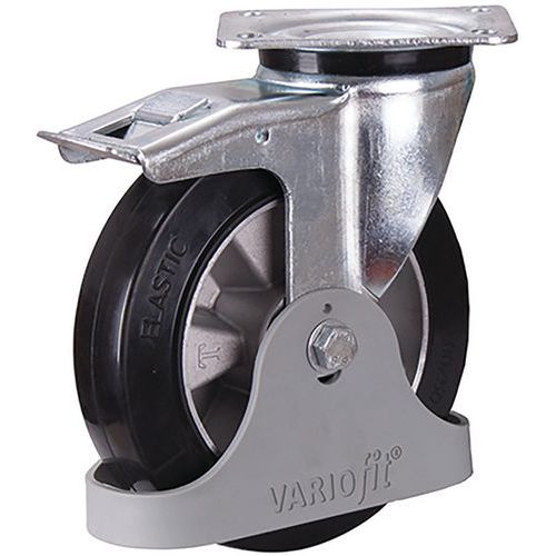 Gumové pojezdové kolo s přírubou, 200 x 50 mm, kuličkové ložisko, otočné s brzdou