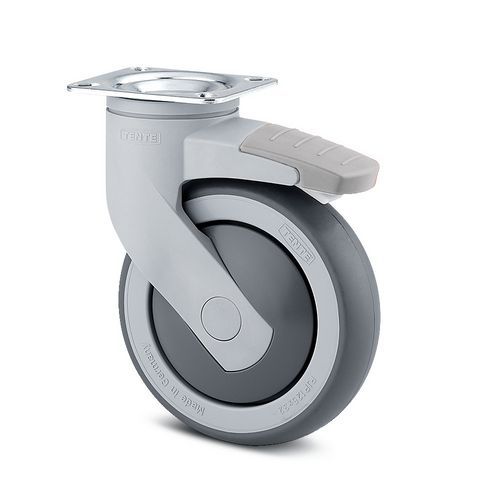 Gumové přístrojové kolo s přírubou, průměr 125 mm, otočné s brzdou, kuličkové ložisko