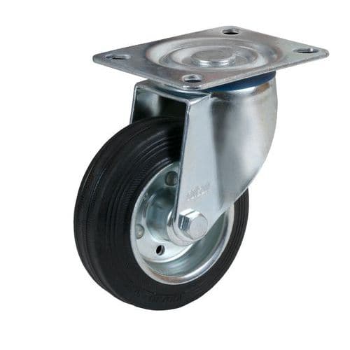 Gumové transportní kolo se středovým otvorem, průměr 125 mm, otočné s brzdou, valivé ložisko