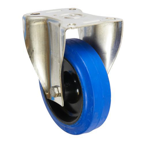 Transportní kola s modrou nešpinivou pryžovou obručí. Nízký valivý odpor.