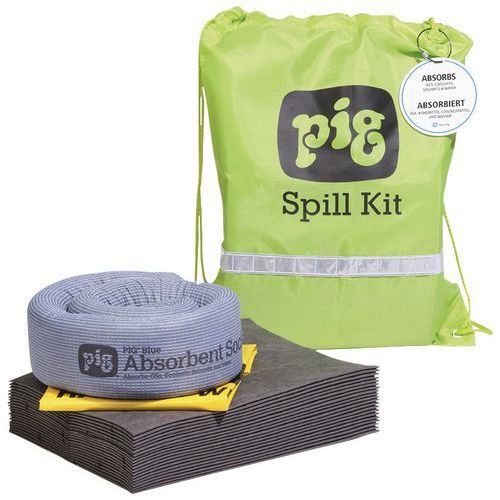 Doporučujeme umístit sady poblíž stanice pro výměnu baterií, aby byla likvidace kyselin rychlá a efektivní.Sada obsahuje: - plastový uzavíratelný kbelík, - 2 plastové pytle, - 1 pár rukavic odolných vůči chemikáliím, - 2 chemické sorpční hady 122 cm, - 10 chemických sorpčních rohoží, - 1 ochranné brýle, - 1 overal, - 1 indikátor měnící barvu, - 1 lžíce a škrabka.