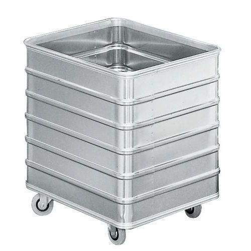 Hliníkový přepravní vozík s objemem 656 l a se stabilními zesílenými žebrovanými stěnami.