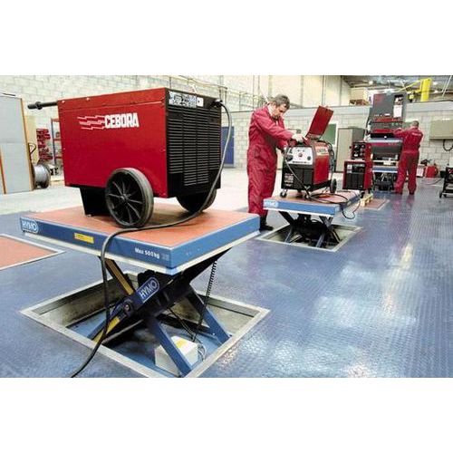 Zvedací plošina s nosností do 500 kg je vhodným řešením pro výškové vyrovnání na montážních pracovištích, ve skladu, při expedici a balení zboží.