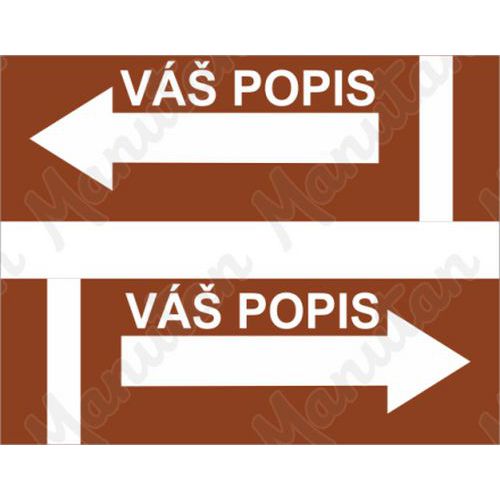 bezpecnostni znacka, tabulka nebo samolepka "znaceni potrubi - vas popis - hneda" plne odpovida pozadavkum pravnich a technickych predpisu, zejmena narizeni vlady c. 375/2017 sb., csn iso 3864-1, csn iso 3864-2, csn iso 3864-3, csn iso 3864-4.