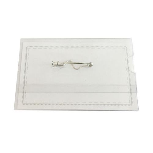 Transparentní plastová jmenovka (visačka) s klipem, typ otevřená kapsa.