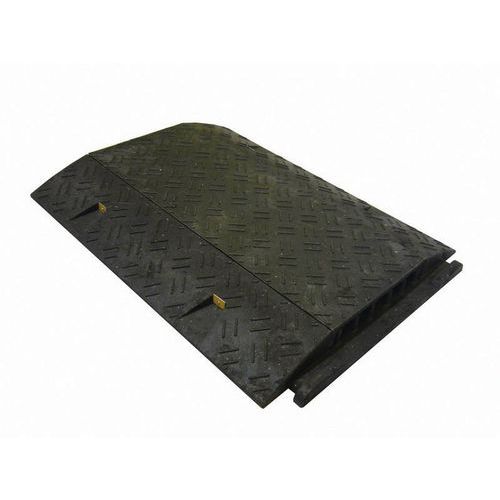 prejezd s hornim vikem k ochrane kabelu, hadic a trubek, ktere je nutne vest pres vozovku. vhodne k pouziti ve vyrobnich provozech, pozemnich komunikacich, pri poradani kulturnich akci a podobne. spojeni jednotlivych dilu pomoci jednoduchych zamku na konci mostu.