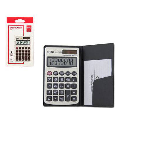 Kapesní kalkulátor v praktickém designu s ochranným plastovým pouzdrem.