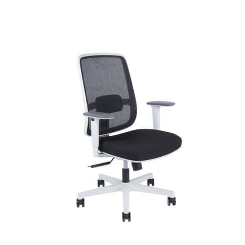 Moderní kancelářská židle se synchronní mechanikou a výškově nastavitelnou bederní opěrkou.