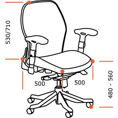 kancelarske zidle s anatomicky tvarovanym sedakem a sitovanym operakem. diky synchronnimu mechanismu lze zafixovat kreslo v jakekoli poloze. moznost nastaveni sily protivahy, vysky sedaku i vysky podrucek. zidle je opatrena univerzalnimi kolecky pro tvrdou podlahu i koberec. moznost vyberu ze sedmi barevnych provedeni. nosnost teto otocne zidle je 120 kg. moznost dokoupeni operky hlavy.