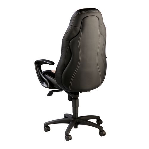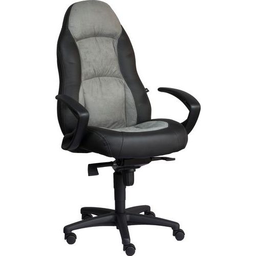 Kancelářské křeslo s ergonomicky tvarovaným sedákem i opěradlem. Křeslo disponuje houpacím mechanismem s možností zajištění v několika polohách. Kancelářská židle je čalouněná kombinací mikroplyše a syntetické kůže. Židle nabízí pevné područky, samobrzdicí kolečka pro měkké povrchy a opěrku hlavy. Nosnost židle je 110 kg.