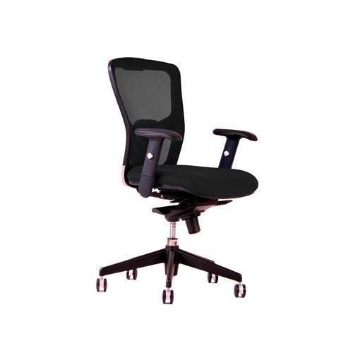 Kancelářská židle s polstrovaným výškově nastavitelným sedákem a opěradlem ze síťoviny.