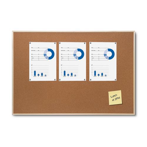 korkove tabule na zed s drevenym ramem v barve teakoveho dreva.
