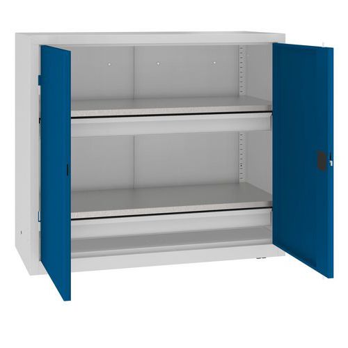 Dílenská zásuvková skříň Bott Cubio 200, 120 x 130 x 65 cm, 10 zásuvek, šedá-modrá