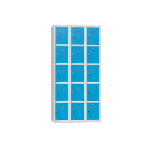 Svařovaná šatní skříň Acial, 2 sloupce, 4 boxy, 400 mm, cylindrický zámek, šedá/modrá