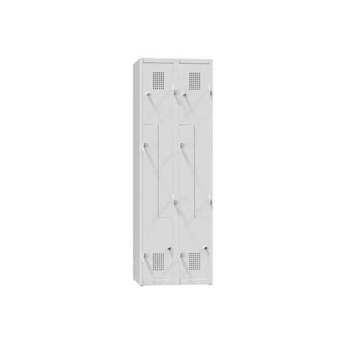 Více-oddílová šatní skříň svařovaná z ocelového plechu tloušťky 0,7 mm.