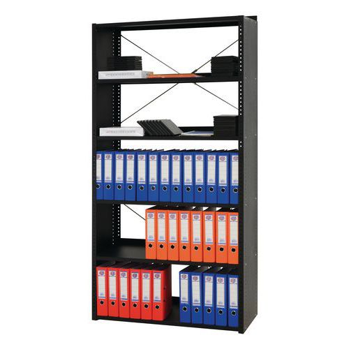 Kovové regály, základní, 198 x 100 x 30 - 40 cm, 5 polic, černé
