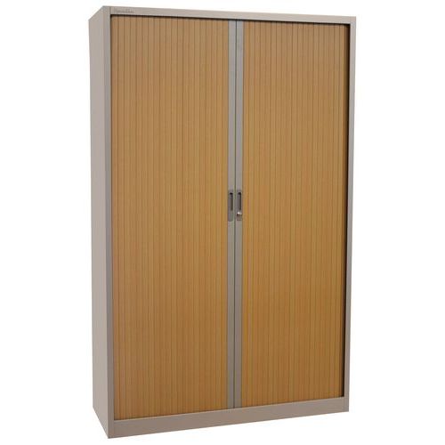 Nízká kovová komoda nabízí prostor pro ukládání šanonů, spisů a jiných kancelářských dokumentů.