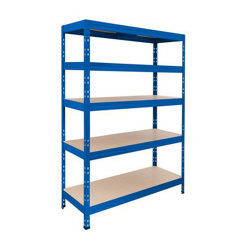 Kovový regál Manutan Expert Rapid 3, 180 x 150 x 60 cm, 250 kg/police, 5 dřevovláknitých HDF polic, modrý