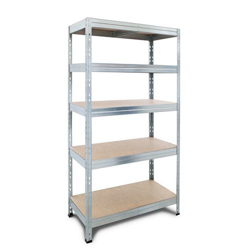 Kovový regál Manutan Expert Rapid 3, 180 x 90 x 60 cm, 250 kg/police, 5 dřevovláknitých HDF polic, pozink