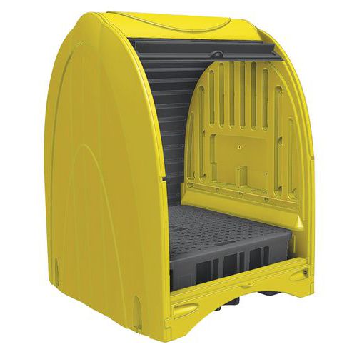 Retenční uzavíratelný box vhodný pro skladování nebezpečných kapalin.