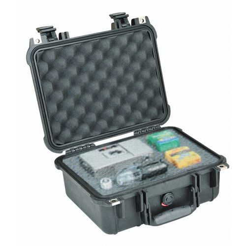 Plastový kufr s ocelovými panty je odolný vůči vodě a prachu.
