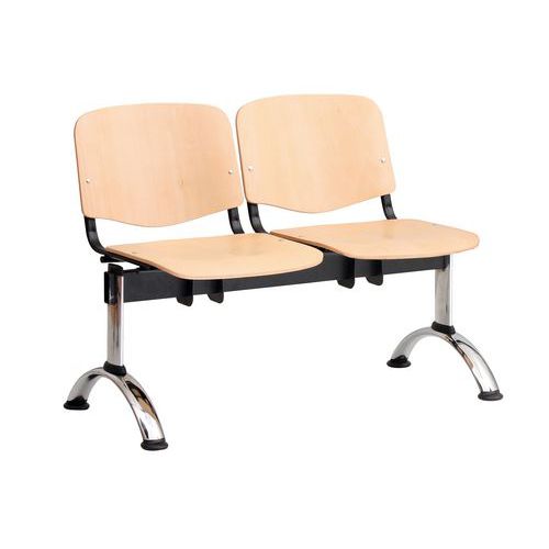 Pětimístná dřevěná lavice ISO v dekoru přírodního buku je vhodná do čekáren, hal i jiných veřejných prostor. Lakovaný sedák a opěrák je vyroben z bukové překližky. Stabilitu dřevěné lavice zaručuje černý kovový rám. Lavice do čekáren lze doplnit o područky.